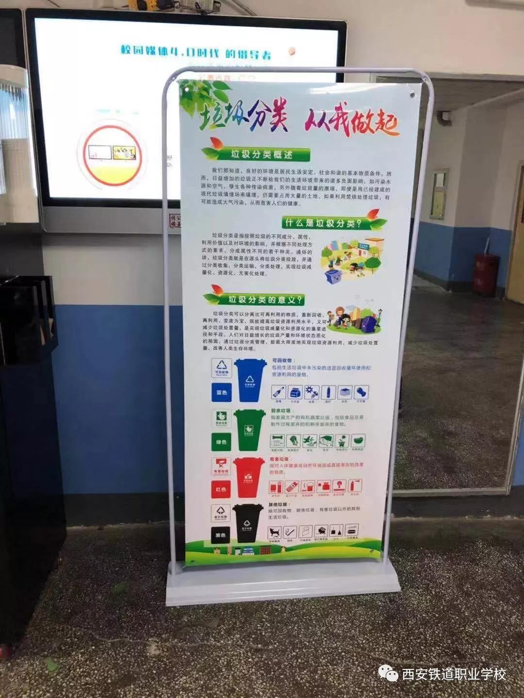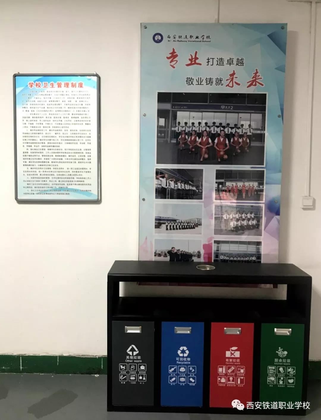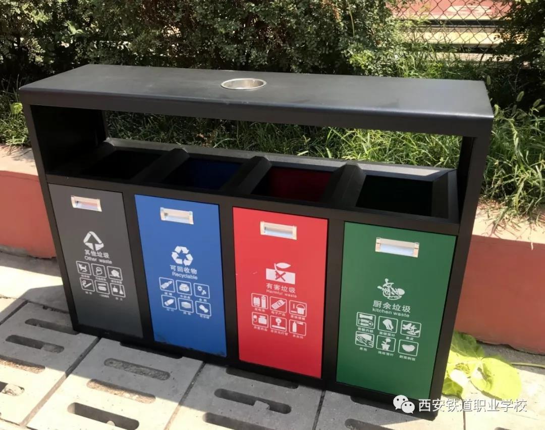 为进一步推进落实西安市垃圾分类工作,我校领导高度重视,加步推进垃圾分类硬件条件建设,实现校园分类设施全覆盖,在校园内各个场所配置完成各类垃圾投放点。