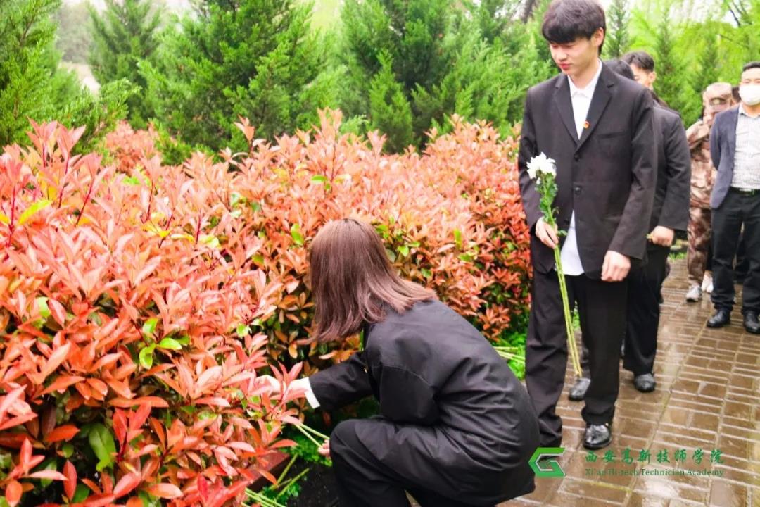 为贯彻落实《中共中央关于在全党开展党史学习教育的通知》,传达学习习近平总书记在党史学习教育动员大会上的重要讲话精神,落实人社厅、机关党委党史学习教育工作要求,加强党员干部对党史学习的热情,形成学党史用党史的良好氛围。西安高新技师学院组织开展了清明节祭扫烈士陵园主题活动。 松柏苍翠,陵园肃穆。在清明节来临之际,为追寻英雄足迹,继承先烈遗志,弘扬革命传统,增强责任感和使命感。4月1日上午10点,由我院党支部组织的清明节烈士陵园公祭活动在西安市烈士陵园庄严举行,党支部组织委员李应坤、统战委员徐正超、纪检委员陈召召、团委副书记张刚、部分教职工及学生共同参加本次活动。活动由徐正超主持。 献花、敬挽 首先,国护队礼兵为革命先烈敬献花篮,李应坤同志、陈召召同志整理挽联,全体鞠躬,表达对革命先烈的缅怀与敬仰。 站在烈士墓碑前,仿佛烈士当年的英勇事迹就在眼前,多少年来,革命先烈的丰功伟绩一直被人们传颂。不管时代如何变迁,先烈们舍生忘死,前赴后继,为他人谋幸福的高尚品德不应该被遗忘,他们的无畏和奉献精神万古长青。 重温入党誓词 在陈召召同志的带领下,举行了庄重的悼念仪式,深切的缅怀了革命先烈。同时在陈召召同志铿锵有力的领誓下,面对鲜红的党旗,面对着烈士纪念碑,举起握拳的右手,庄严宣誓,恪守对党的承诺,筑牢理想信念,不忘初心,牢记使命。 在纪念馆前,李应坤同志讲到:作为一名共产党员,我们要全心全意为人民服务,为祖国富强、人民幸福努力奋斗。作为一名教育工作者,在日常工作中,要敢于担当、勇于创新、扎扎实实做好本职工作,坚持立德树人,为祖国培养合格的建设者和接班人。 学生向英雄先烈们献花,让不朽的精神在学习生活中开花结果,发扬光大。 党员及学生们表示通过多彩的教育活动,进一步激发了热爱党、热爱祖国的情感,使得道路更加坚定,信念更加坚定,使命更加坚定,定会在自己的岗位上作出应有的贡献,推助实现百年高新梦!