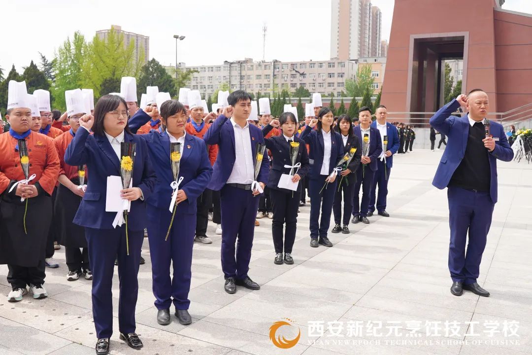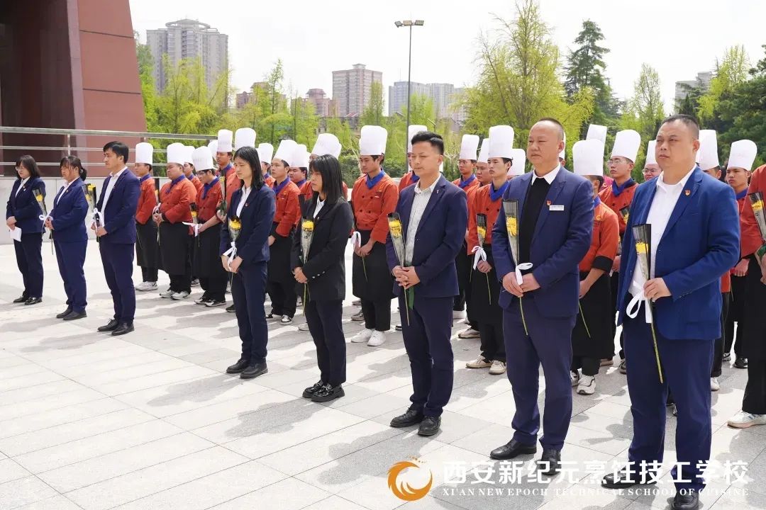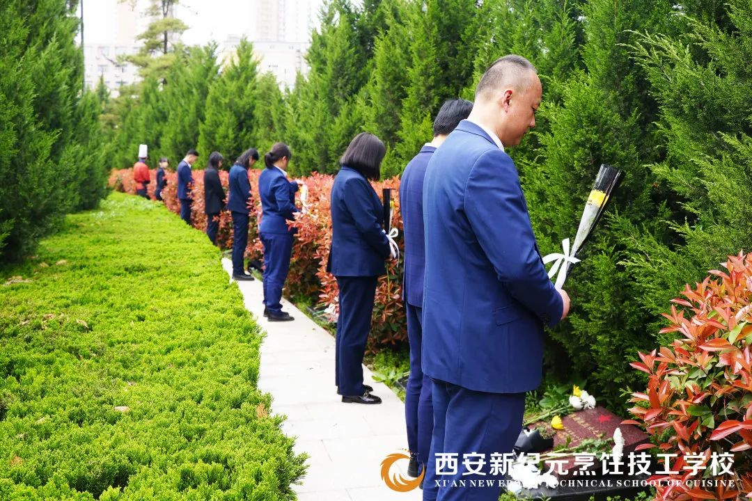 清明节又称踏青节、行清节、三月节、祭祖节等,节气在仲春与暮春之交,清明节源自早期人类的祖先信仰与春祭礼俗,是中华民族最隆重盛大的祭祖大节,清明节兼具自然与人文两大内涵,既是自然节气点,也是传统节日,西安新纪元烹饪技工学校借此节日于2023年4月4日上午,在西安革命烈士陵园举行庄重的清明祭扫烈士陵园活动。