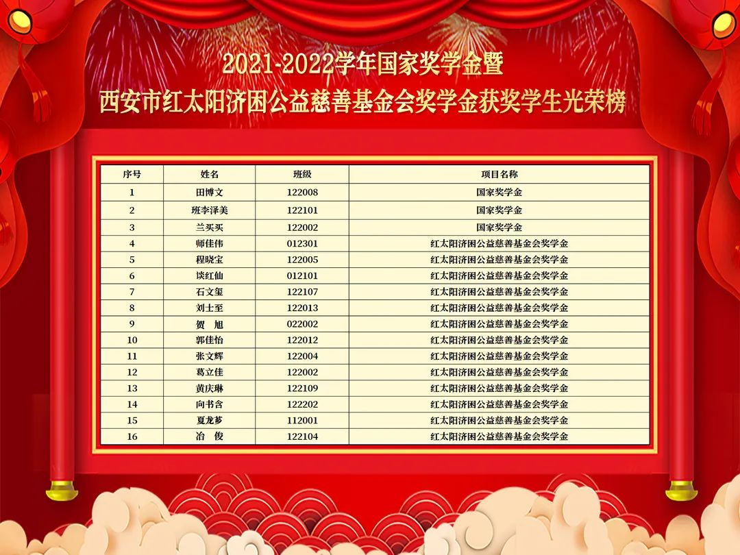 五、宣读西安市红太阳济困公益慈善基金会助学奖学金获奖决定并颁奖
