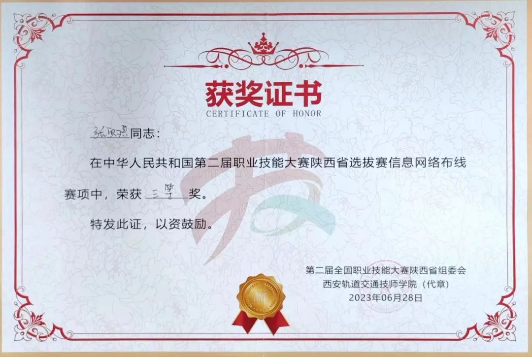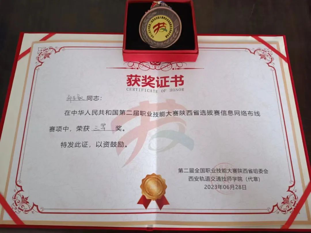 我院优秀教师张欣琪、郑亚歌二位老师,分别荣获第二届全国职业技能大赛陕西省选拔赛“信息网络赛项”三等奖荣誉。