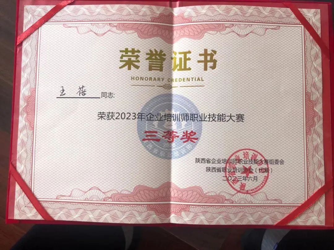 优秀教师王蓓获得“2023年企业培训师职业技能大赛三等奖”,并荣获“陕西省金牌企业培训师”称号。