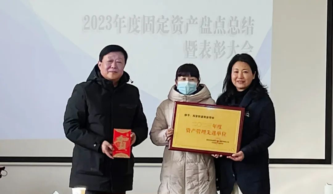 12月20日上午九点半,在集团会议室召开2023年度资产管理总结暨表彰大会,集团副总裁屈红、财务总监吴宝红、财务处长刘晓涛、审计督察部部长刘敏孜、副部长王冲、行政部部长戴宝庆、副部长马静及各单位总务处负责人、资产管理员和财务处资产管理员参加会议,会议由行政部部长戴宝庆主持。