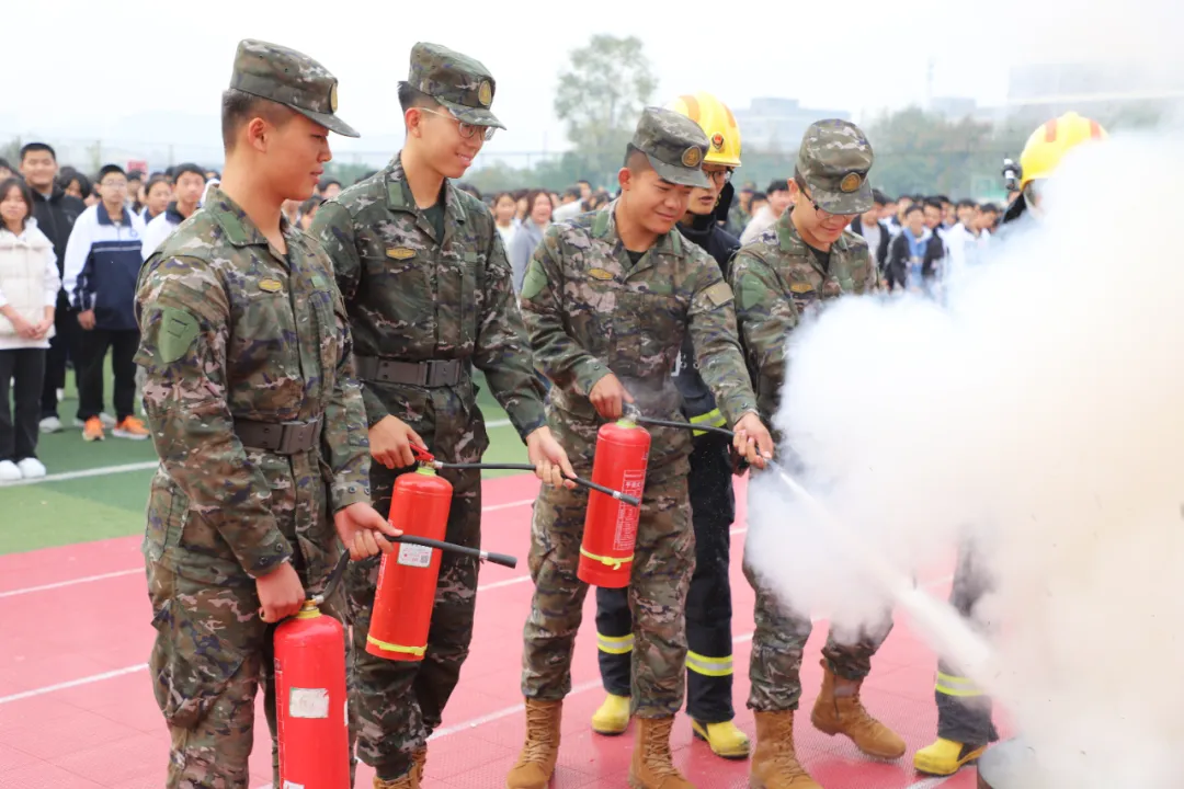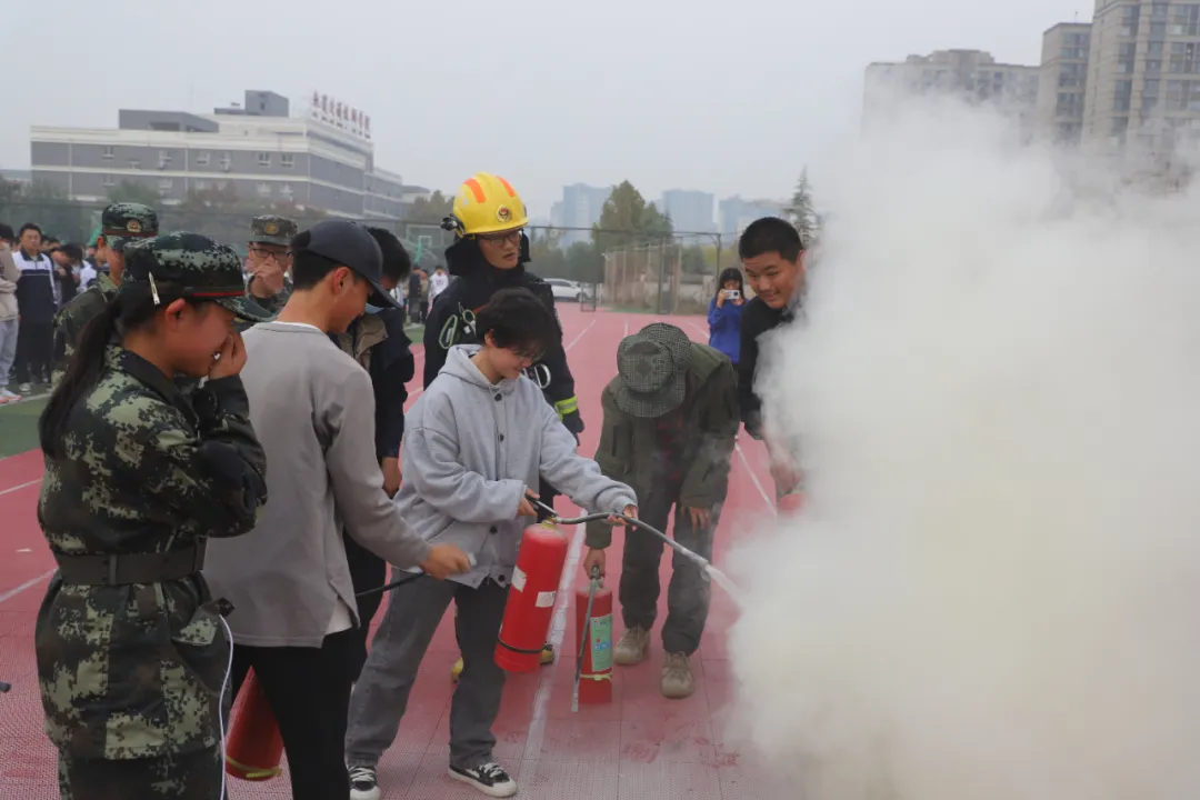 为了让同学们更加直观地了解灭火器的使用方法,李站长和昆明池消防站队员向同学们示范了如何正确使用灭火器,详细介绍了灭火器的种类、适用范围以及操作步骤,并邀请了几位同学进行实操练习。通过亲身实践,同学们对灭火器的使用有了更加深刻的体会。