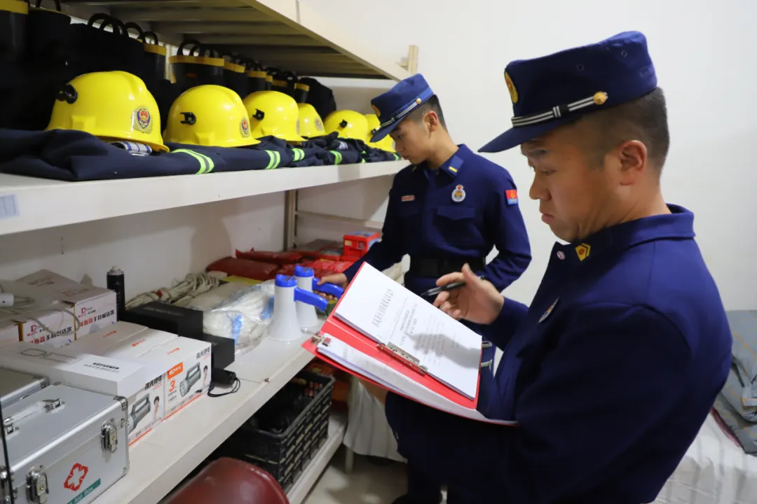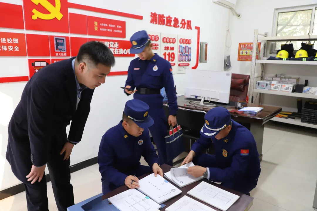 首先,贾耀副站长一行对学院校园消防站的设备进行了细致检查,确保各类消防器材处于良好状态,能够随时应对突发情况。并对我院消防预案进行仔细查阅。