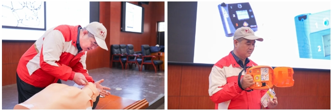培训聚焦心肺复苏、AED应用及海姆立克急救法,主讲急救基础理论知识、创伤急救知识、气道异物梗阻急救、“救命神器”AED的使用实操,旨在全面增强师生的心肺复苏等急救能力。活动采用现场讲授与实操演练相结合模式,依托理论知识与实际案例,深刻剖析心肺复苏机制、技巧,同时细致说明AED的操作流程及注意事项。参加培训的师生代表全程认真学习应急救护知识及技能,收获满满。