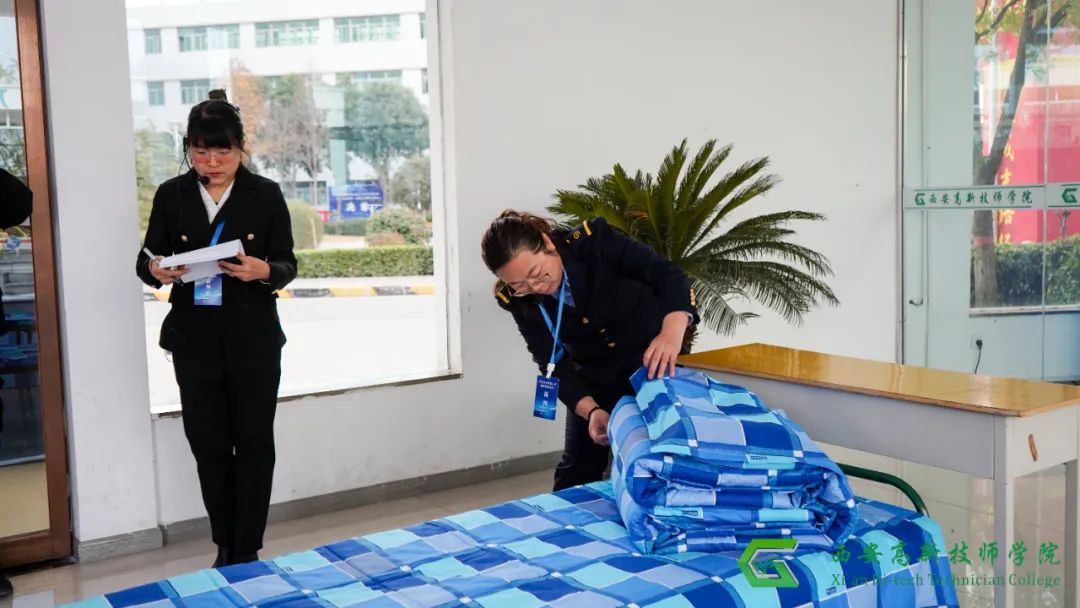 本次大赛分为理论知识考核和实操项目两个部分。实操项目包括行李架整理项目、卧具整理项目和中英文播报项目。理论知识考核采用闭卷考试形式,考试时长60分钟,题型涵盖单项选择题、多项选择题、判断题和简答题。