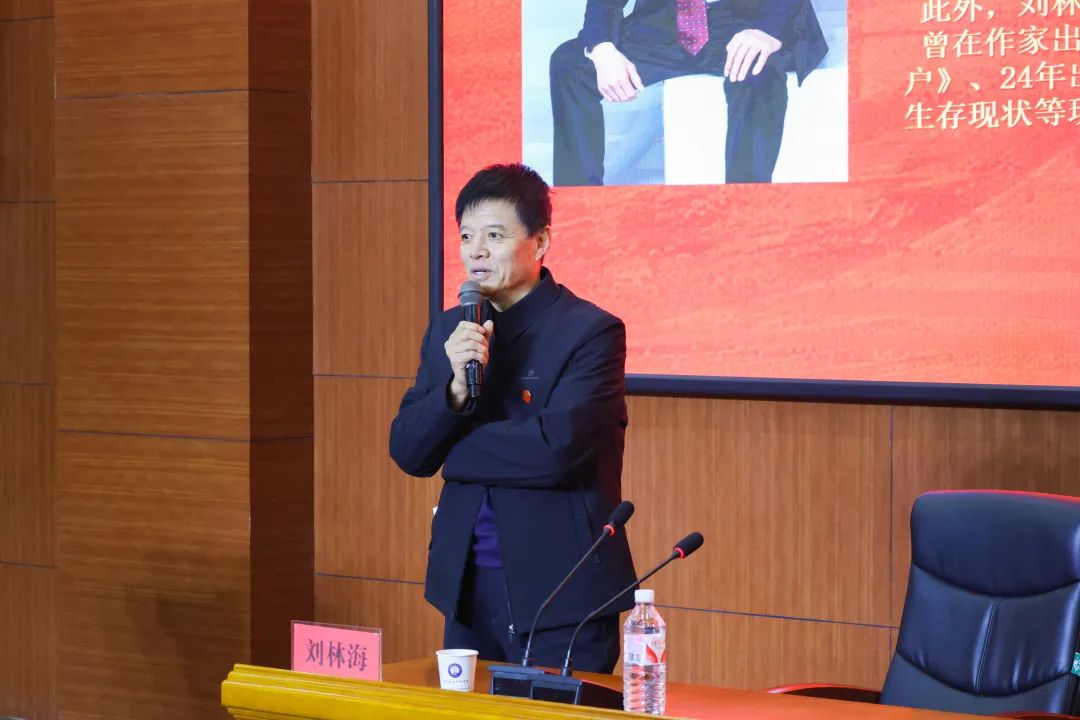敬献花篮仪式结束后,还特邀陕西汉廷律师事务所主任刘林海老师为师生代表进行了“纪念毛主席诞辰131周年”专题讲座。刘林海老师以毛泽东同志各个阶段的诗词为切入口,讲述了毛泽东同志的光辉思想、崇高品德和革命风范。给师生代表们上了一堂生动的思政课。