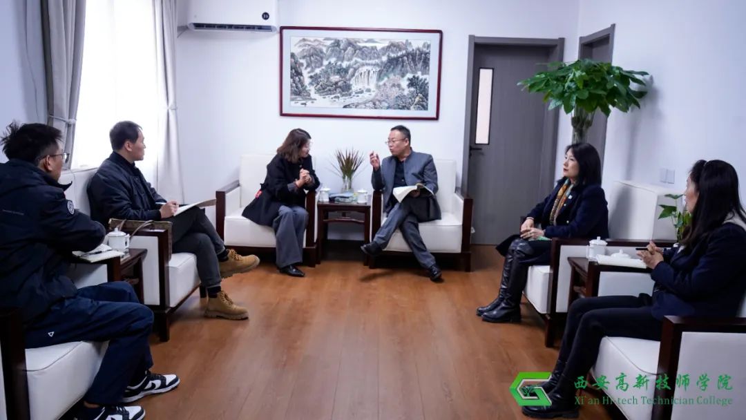 参观结束后,学院常务副院长任東、教务处处长党向婷、宣传处处长王丽霞、专业建设委员会主任苏宁与协会嘉宾在学院接待室进行了深入的交流座谈。座谈围绕美容美发行业展开,任院长介绍了学院在大健康教育、技能竞赛等方面的现有成果,包括已培养的医美专业人才数量等,还阐述了学院在师资队伍建设、课程建设等方面的努力与规划。同时,表达了对未来与陕西省美容美发化妆品业协会合作的期待。