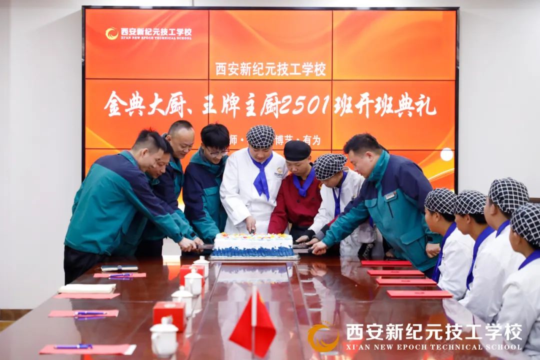 在欢快的音乐声中,校领导、班主任及学生代表共同切开开班蛋糕。蛋糕的切开,象征着新学期的开始,也寓意着学校、老师和学生们将共同分享成功的喜悦。现场气氛热烈,师生们脸上洋溢着幸福的笑容。 此次开班典礼的顺利举行,为西安新纪元技工学校 2025 级中餐系部一班二班春季新生翻开了学习生涯的精彩篇章。在未来的日子里,我校将继续秉持教育初心,为每一位学子搭建成长与发展的广阔平台,提供全方位的支持与关怀。相信在全体师生的共同努力下,新生们定能在这片充满希望的土地上汲取知识的养分,绽放青春的光彩,成为德技双馨的高素质技能人才,为实现个人价值和社会发展贡献力量。