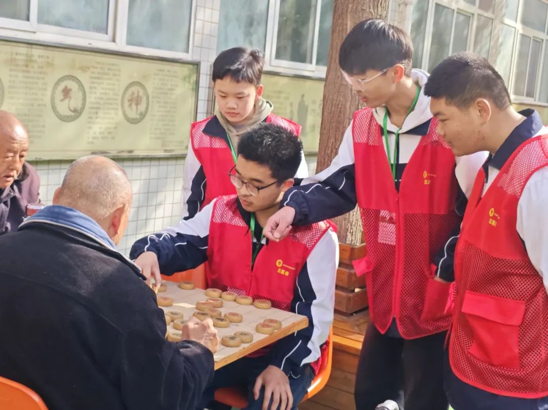 踏入老年公寓,老人们脸上洋溢着和蔼的笑容,眼中满是期待。同学们迅速行动起来,分组陪伴在老人身边。大家亲切地与老人拉起家常,耐心倾听他们讲述过去的故事,每一段回忆都无比珍贵。有的同学陪老人下棋解闷,有的同学为老人精心准备了小礼物,一首歌、一个段子,饱含着对老人深深的祝福。