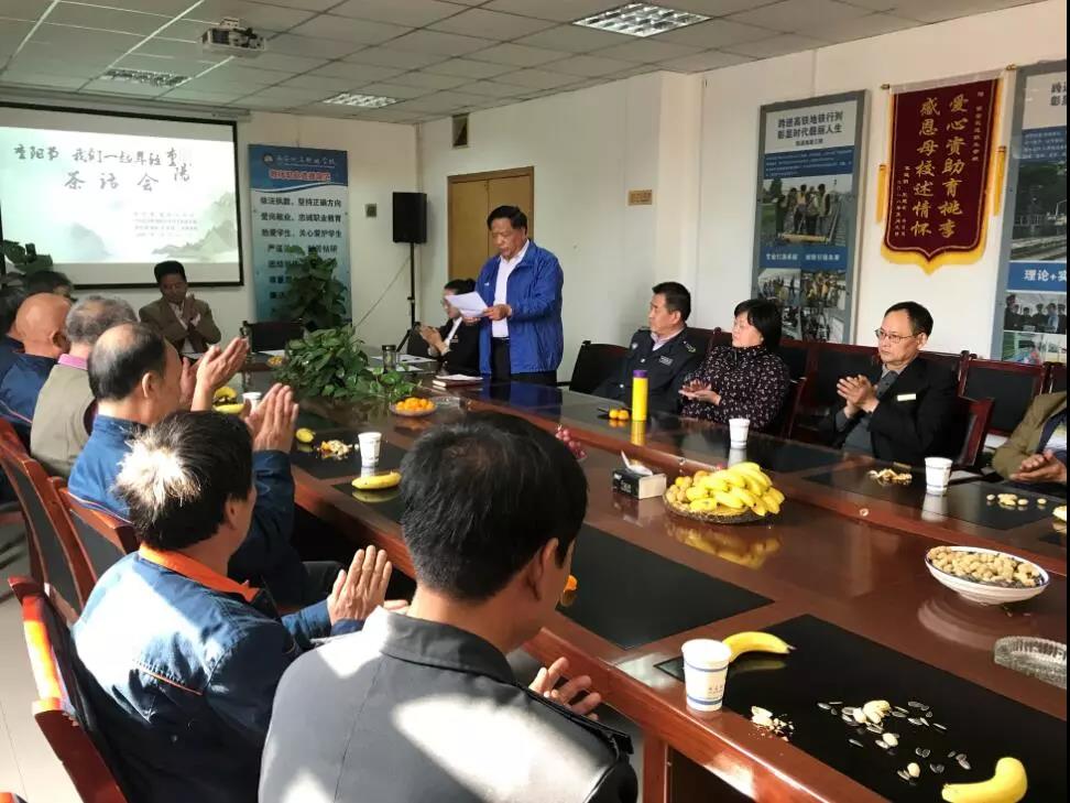 霜叶红似花,莫道桑榆晚;秋高气爽,丹桂飘香;岁岁重阳,今又重阳。中秋国庆节喜悦刚过,又迎来了我国传统的敬老节日----九九重阳节。在这幸福的敬老节里,学校隆重举行“重阳节 我们一起年轻”为主题的老教工会员茶话座谈会。校长、书记和老同志们欢聚一堂,把茶言欢,共度敬老佳节。