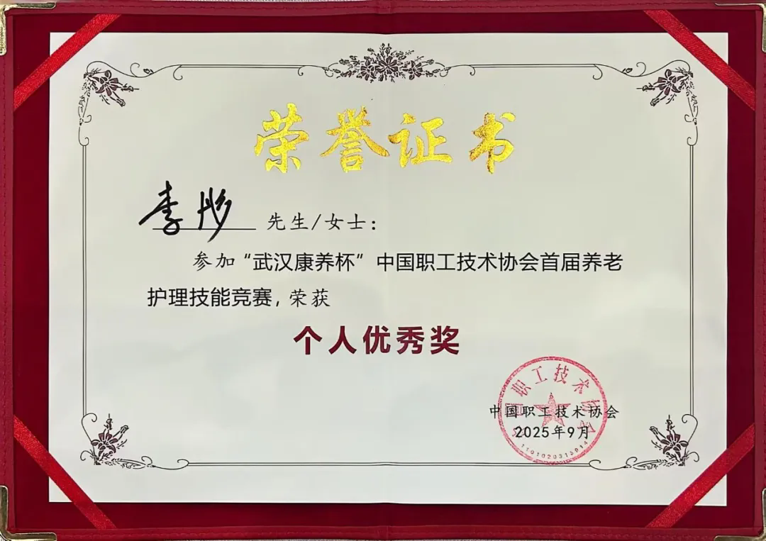 金秋时节,全国养老护理领域的目光聚焦湖北武汉—— 中国职工技术协会首届养老护理技能竞赛在此圆满落下帷幕。作为中国职工技术协会首次举办的养老护理全国性高规格赛事,吸引了来自全国近100余名选手同台竞技,全方位考核养老护理人员的专业操作、应急处置、人文关怀等核心能力,是对全国养老护理人才队伍水平的一次集中检阅。