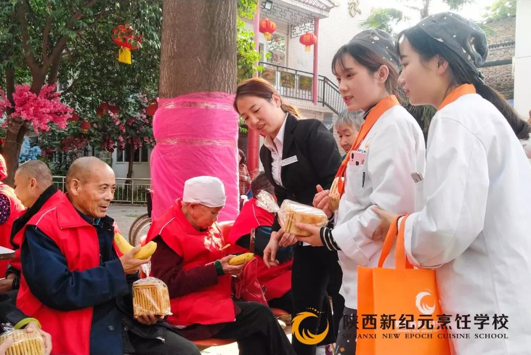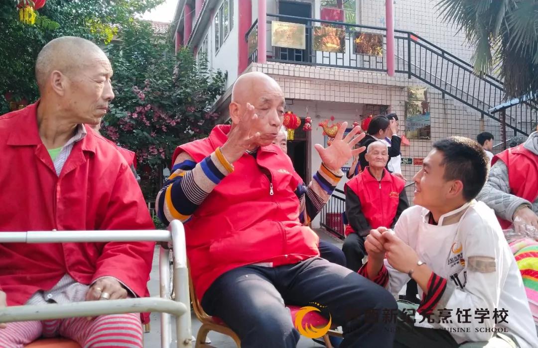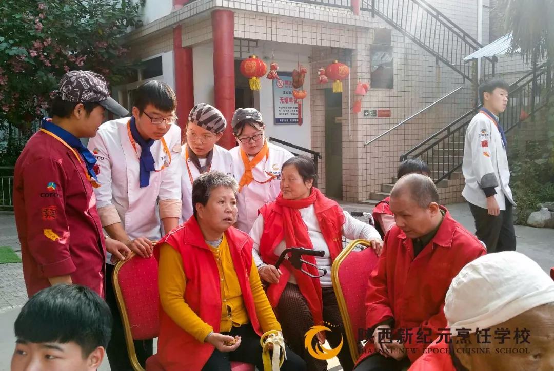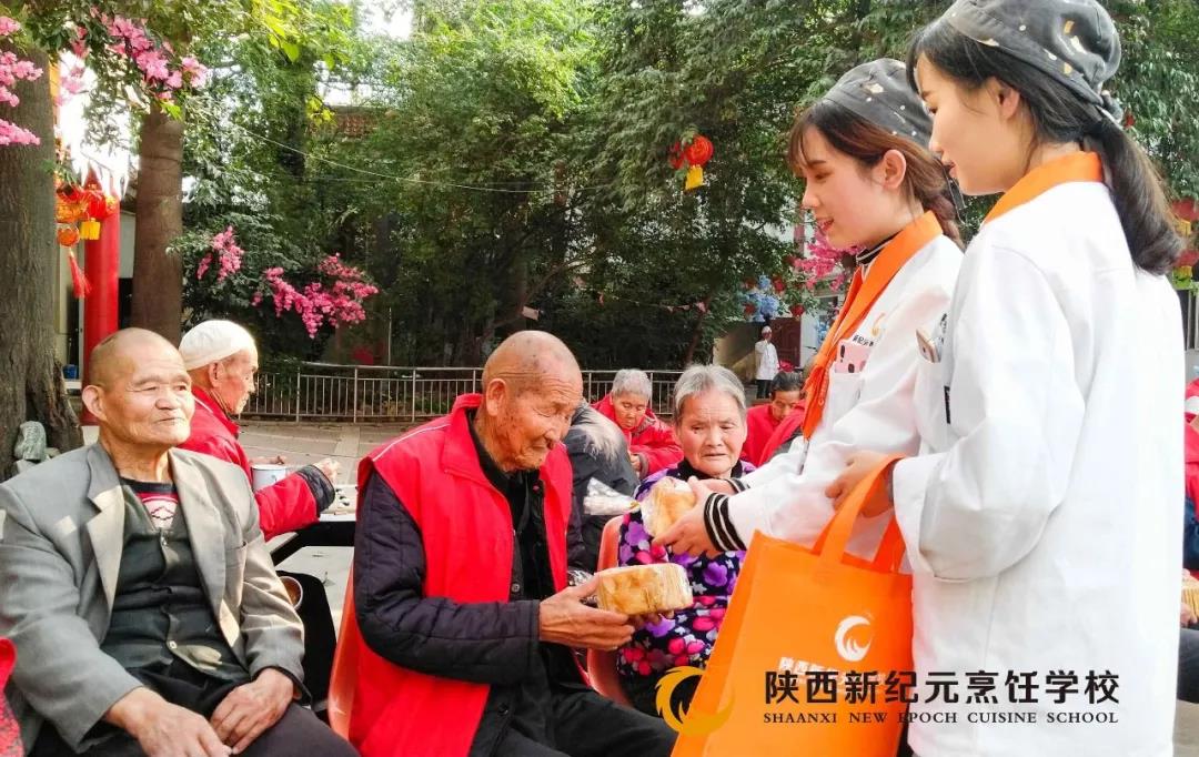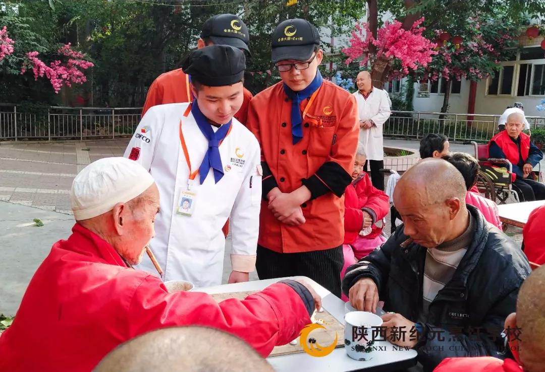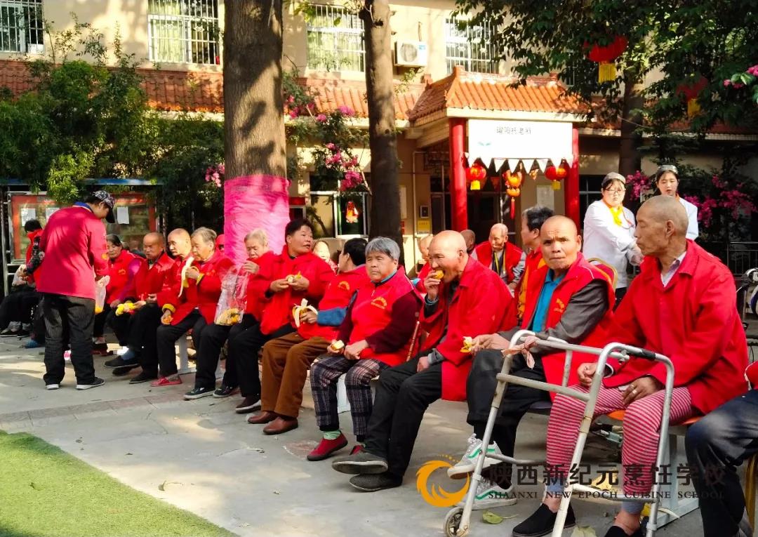 秋风徐徐引丹桂,重阳九九送温暖。10月17日是农历的九月初九,是中华民族的传统节日——重阳节。为弘扬中华民族尊老敬老的传统美德,激发同学们敬老爱老的内在自觉,“九九重阳节”当天,由陕西新纪元烹饪学校主办的重阳节敬老院助老活动,在灞桥敬老院拉开了帷幕,我校师生一起为老人们送上了关爱和节日的慰问。