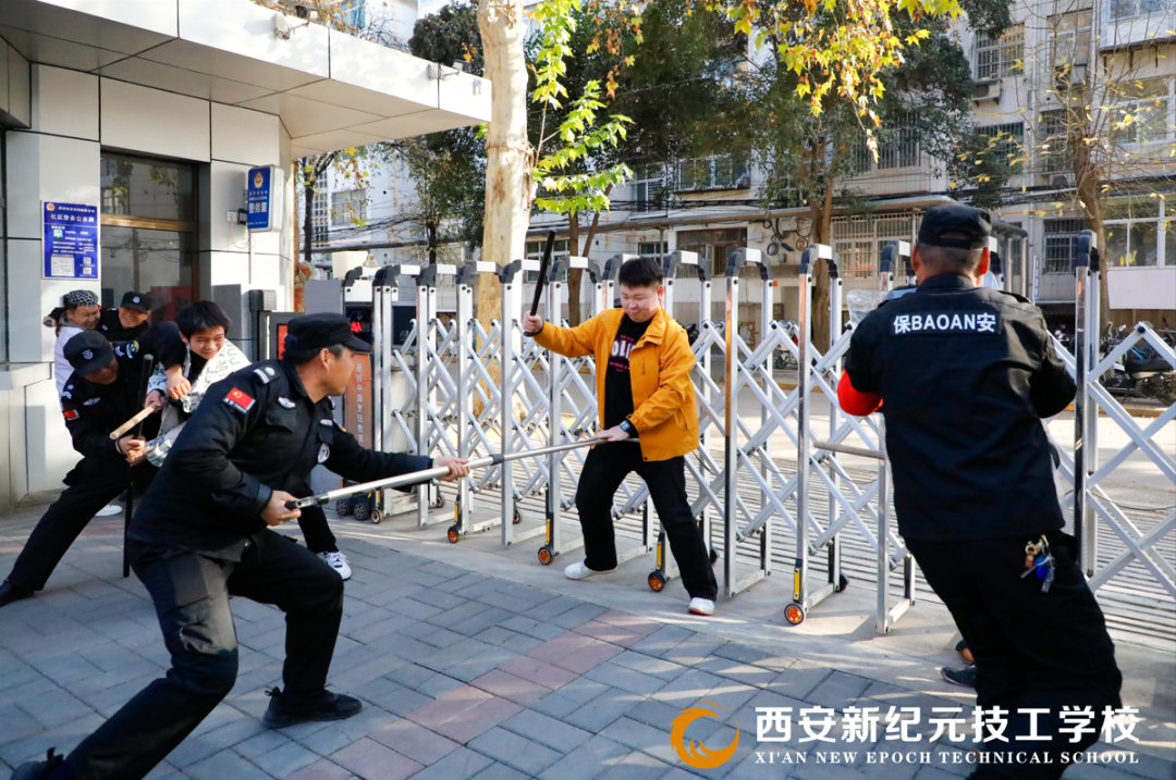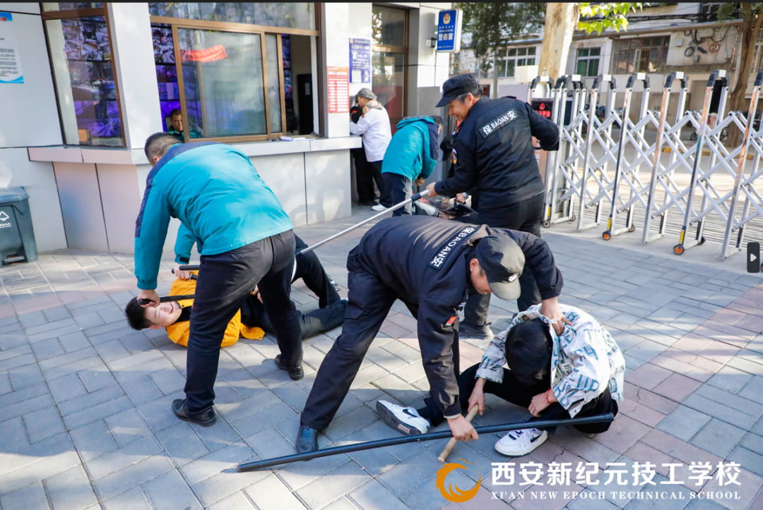 演练过程中,模拟“外来人员滋扰并试图强行闯入校园”的场景一经触发,应急领导小组迅速启动应急预案。组长党支部副书记曳园园第一时间下达指令,各成员立即行动:保卫处安保人员迅速携带防暴装备抵达现场,一边设立安全警戒区域,一边利用防暴盾牌、橡胶棍等应急装备迅速形成防线,有效阻拦试图闯入的人员,果断控制现场局势;团委书记王凯旋带领班主任老师有序疏散周边学生,引导学生快速撤离至安全区域,避免拥挤踩踏;