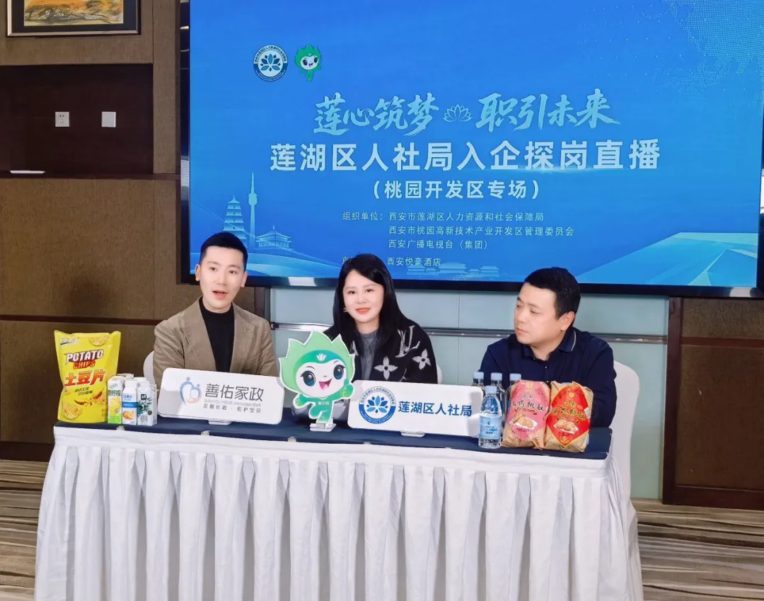 2025年11月20日,由西安市莲湖区人力资源和社会保障局、桃园高新技术产业开发区管理委员会、西安广播电视台(集团)联合组织的 “莲心筑梦 职引未来”入企探岗直播活动(桃园开发区专场) 顺利举行。西安善佑家政管理有限公司作为重点企业受邀参与,总经理魏珍桦女士走进直播间,与广大求职者分享善佑家政的企业理念、岗位机会与职业成长路径。