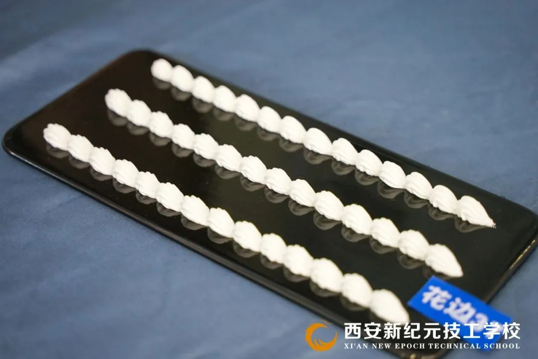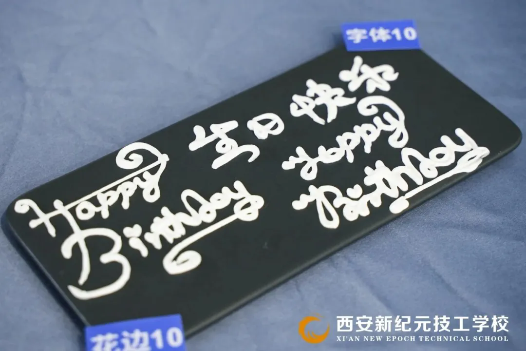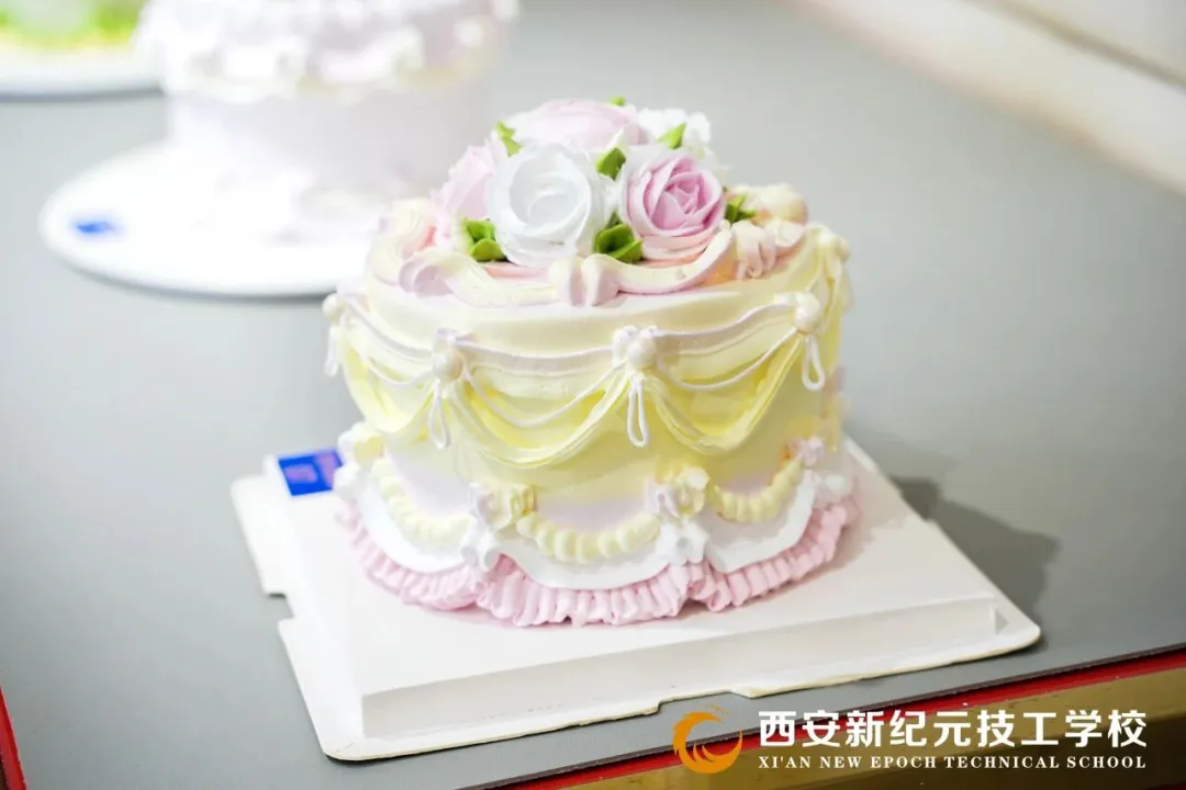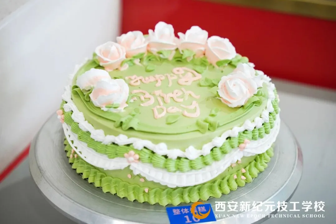 西点专业的竞赛项目涵盖花边、字体、抹胚、整体蛋糕、烘焙(圆柱、橄榄),全方位考验学子的基础技法与创意能力。抹胚环节,奶油涂抹平整光滑,为蛋糕打下完美基础;花边与字体制作中,学子们凭借细腻的手法,勾勒出多样的花边样式与工整的字体,为作品增添精致感;整体蛋糕创作则融合创意与技法,色彩搭配、造型设计独具匠心;烘焙项目中,圆柱、橄榄造型的西点色泽诱人、口感松软,彰显出对烘焙温度、时间的精准把控与原料特性的深刻理解。