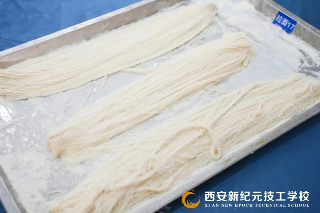 中餐专业的学子们围绕刀工、包子饺子、拉面、刀削面四大项目展开比拼。刀工赛场上,食材在学子手中化为均匀的丝、片、丁,展现出对刀具使用、食材处理的精准把控;包子饺子制作现场,面团揉搓、馅料调配、捏褶成型一气呵成,一个个造型饱满、纹路清晰的面点整齐排列;拉面与刀削面项目中,学子们或手起面落、或拉扯甩动,面条粗细均匀、口感劲道,充分展现了中餐面点的传统技艺魅力。