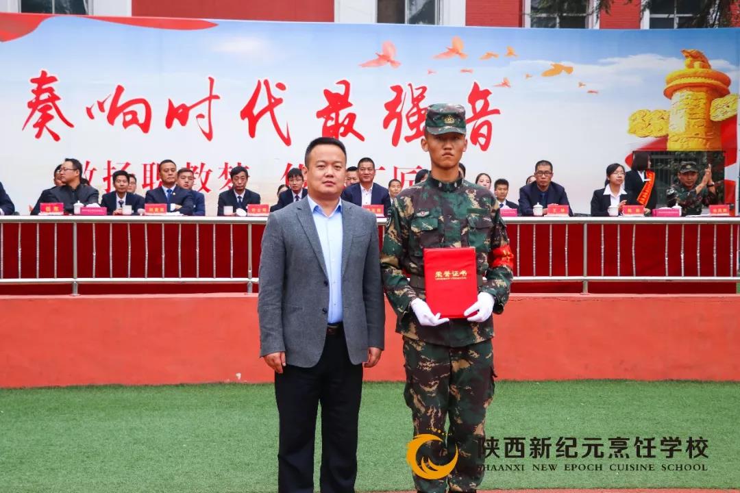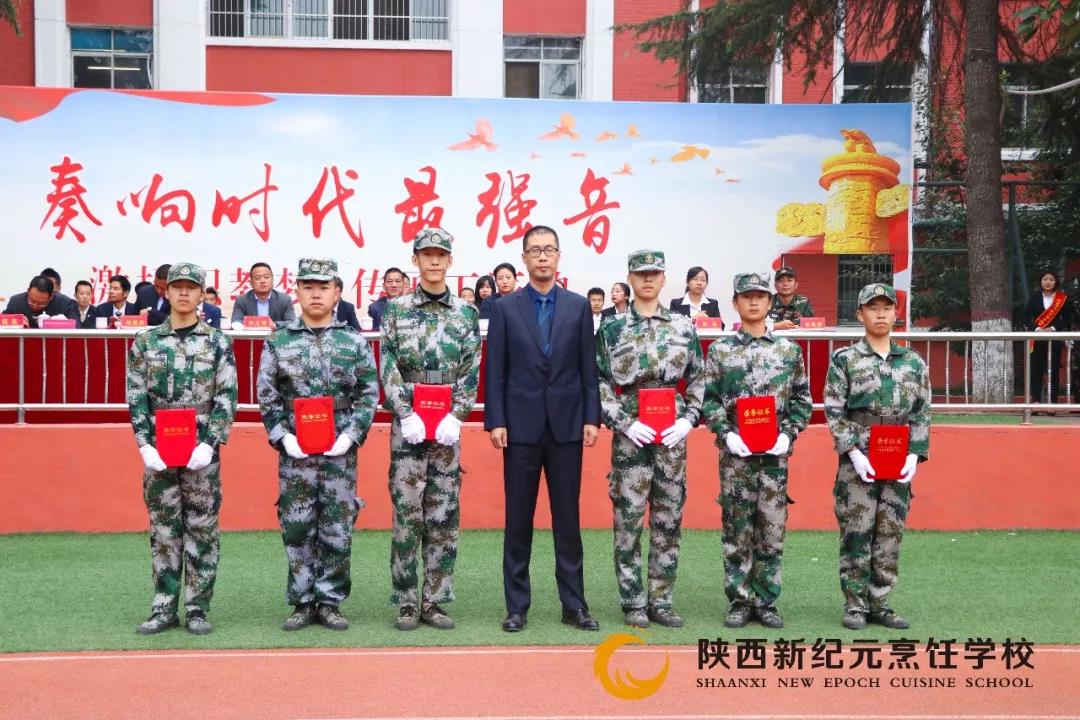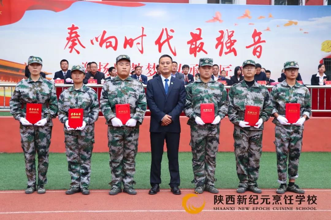 接下来,由陕西新纪元烹饪学校招就办主任申娜宣布本次新纪元军事训练“优秀连队”、“优秀教官”、“优秀标兵”的表彰决定,由陕西宇民教育集团总裁许士明为“优秀连队”颁奖、陕西宇民教育集团董事屈红女士为“优秀教官”颁奖、由陕西宇民教育集团秘书长、西安铁道职业学校校长刘爱民、陕西宇民教育集团财务总监王坤分别为十二名“优秀标兵”颁奖。