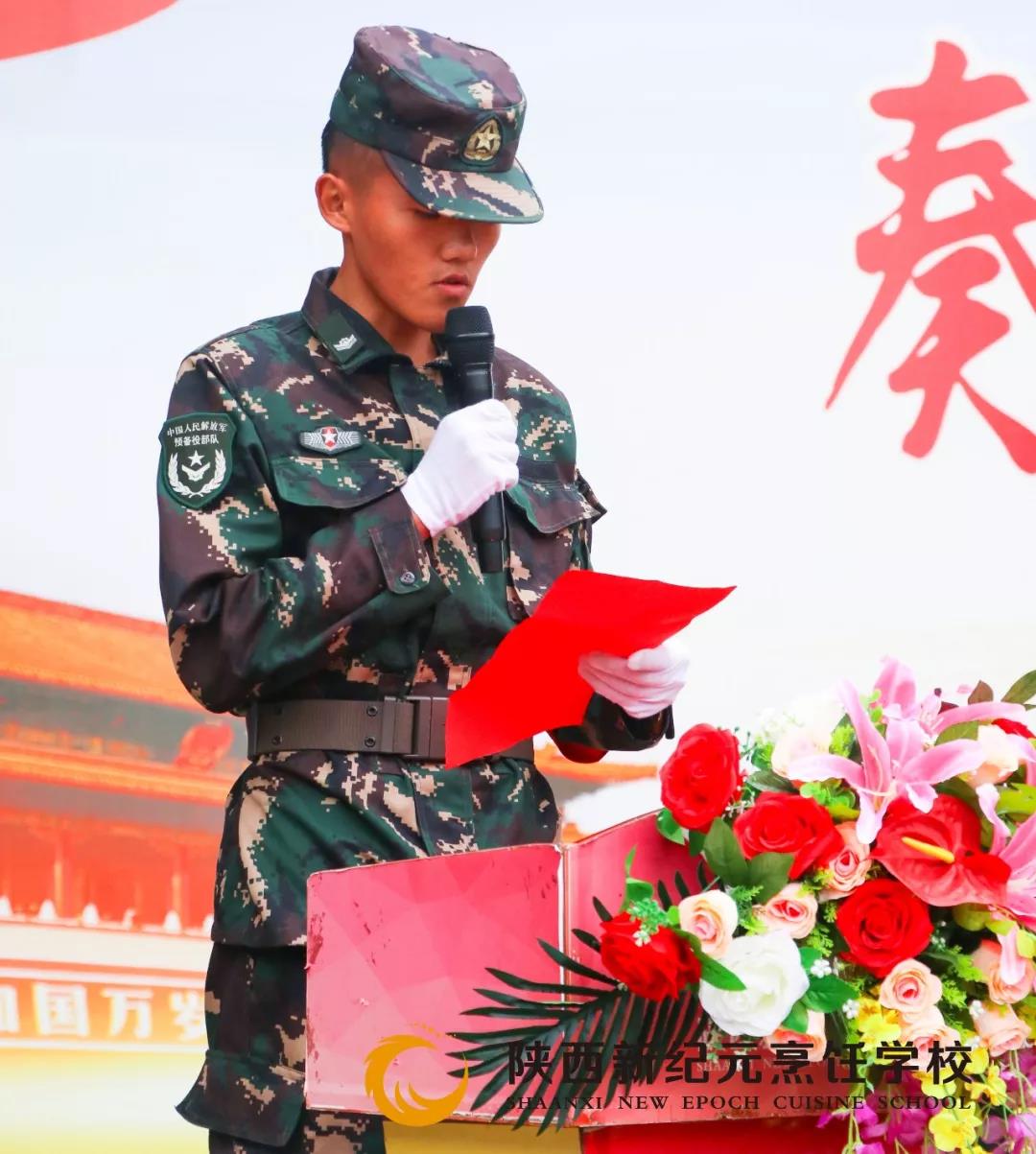 陕西新纪元烹饪学校学区主任陈波主任在讲话中提到:为期11天的军训既是一次严峻的体力考验,更是一次精神的毅力考验。同学们在教官和老师的认真指导下,在进行紧张的队列、军体拳、内务卫生、纪律作风、心理讲座、法制安全讲座等多项内容的训练以不怕苦、不怕累的精神,战胜自我、克服困难、尊敬教官、服从指挥,圆满完成任务。训练期间,全体带队教师工作责任心强,认真履行自己的职责,积极主动配合教官,组织好学生参训。经常深入到学生中间了解学生思想动态,关心参训学生生活,主动做好参训学生的思想工作,热情为学生服务。特别是我们这群美丽、帅气和可爱的班主任们,是他们无微不至的关怀,才能让同学们在枯燥乏味的军训生活中找到温暖。