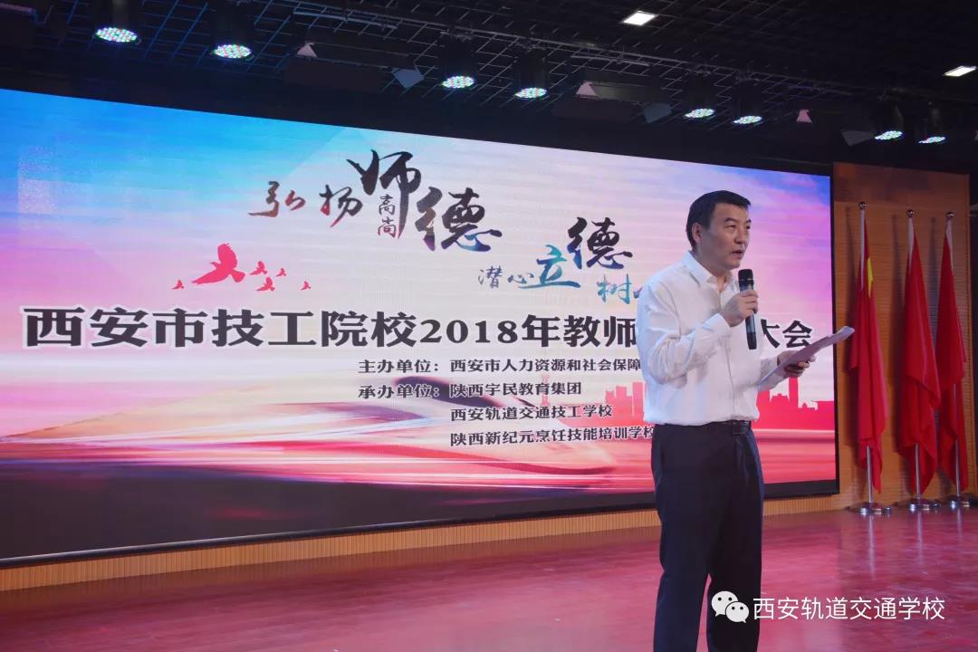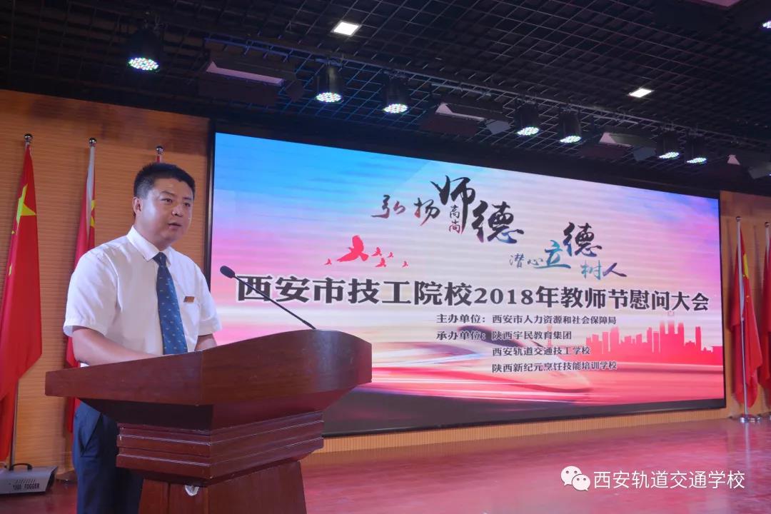 金秋九月,硕果累累。在这天高云淡的美好时节,我们迎来了第34个教师节。9月10日上午,由西安市人力资源和社会保障局主办,陕西宇民教育集团、西安轨道交通技工学校、陕西新纪元烹饪技能培训学校承办的2018年西安市技工院校教师节慰问大会在西安轨道交通技工学校隆重举行。