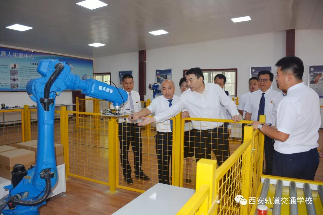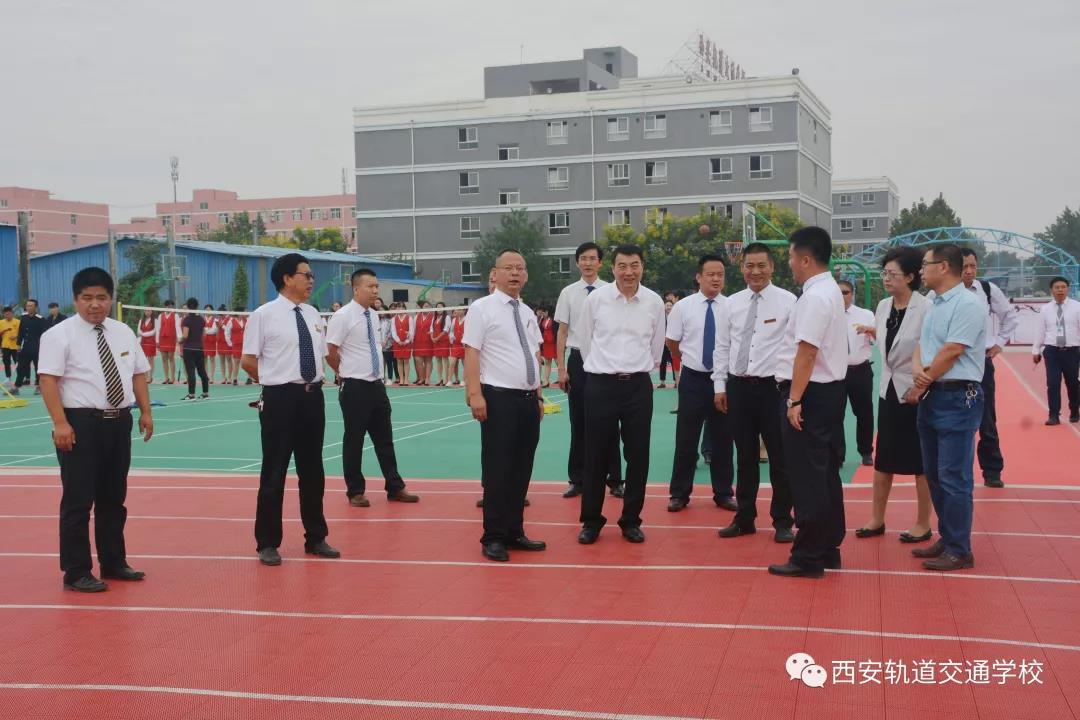 会议结束后,李宁君局长与冯莉副局长在陕西宇民教育集团董事长郑洪彪、副董事长李东霖、总裁许士明、西安轨道交通技工学校校长蔡磊等我校领导的陪同下对田径运动场、实训教学设备等主要设施进行了参观。在参观的过程中,李局长对于我校的各类硬件设施给予了高度的评价,充分肯定了我校的办学实力。