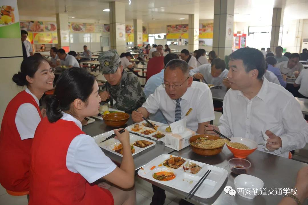 中午,李宁君局长和与会的技工院校的校长、老师们一起,在我校食堂和学生共进午餐。李局长亲切的询问同学们,饭菜是否可口?提醒同学们现在正是长身体的时候,一定要按时吃饭,膳食要营养均衡。