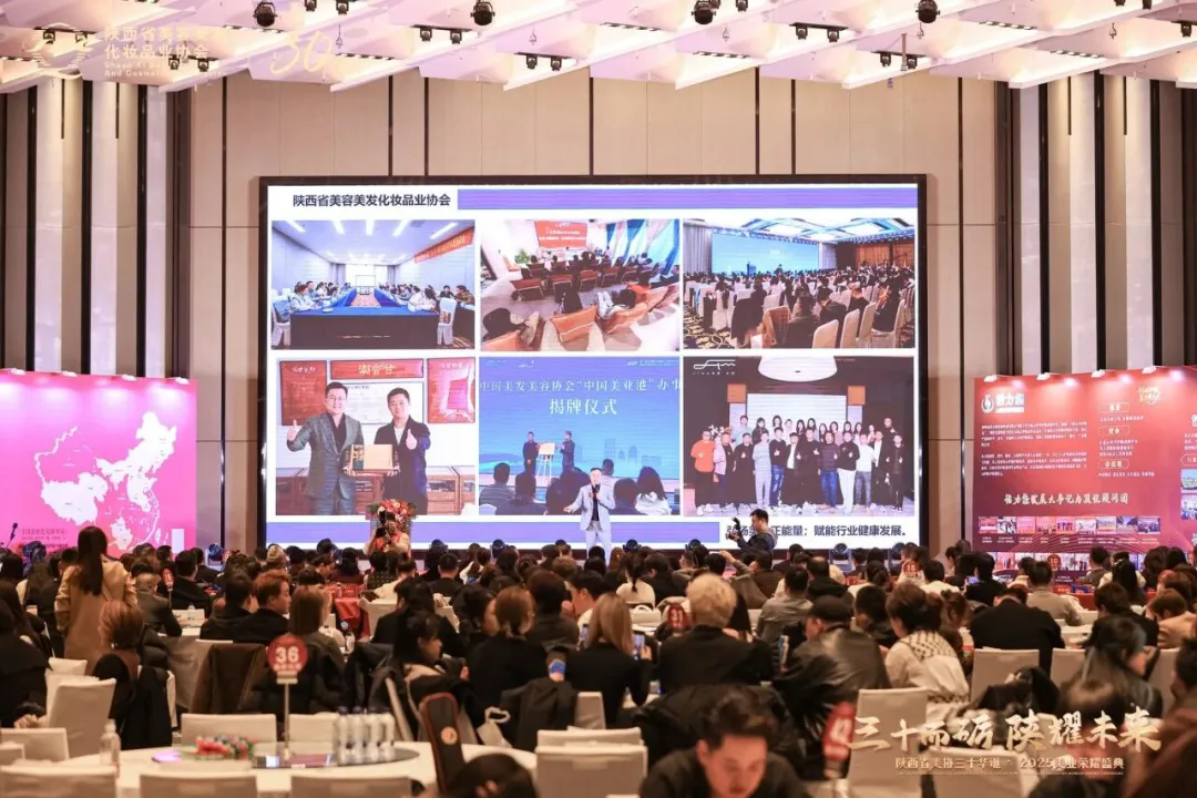 星光璀璨,荣耀绽放!12月10日,“三十而砺 陕耀未来——陕西省美协三十华诞·2025美业荣耀盛典”在西安万丽酒店圆满落幕。作为陕西美业三十年发展的里程碑式盛会,本次活动汇聚了政府领导、省内外美业企业家、技术骨干、行业专家及协会会员代表千余人,以“传承匠心、创新赋能、共赢未来”为核心,打造了一场集成果展示、思想碰撞、荣耀表彰于一体的行业顶级盛宴。