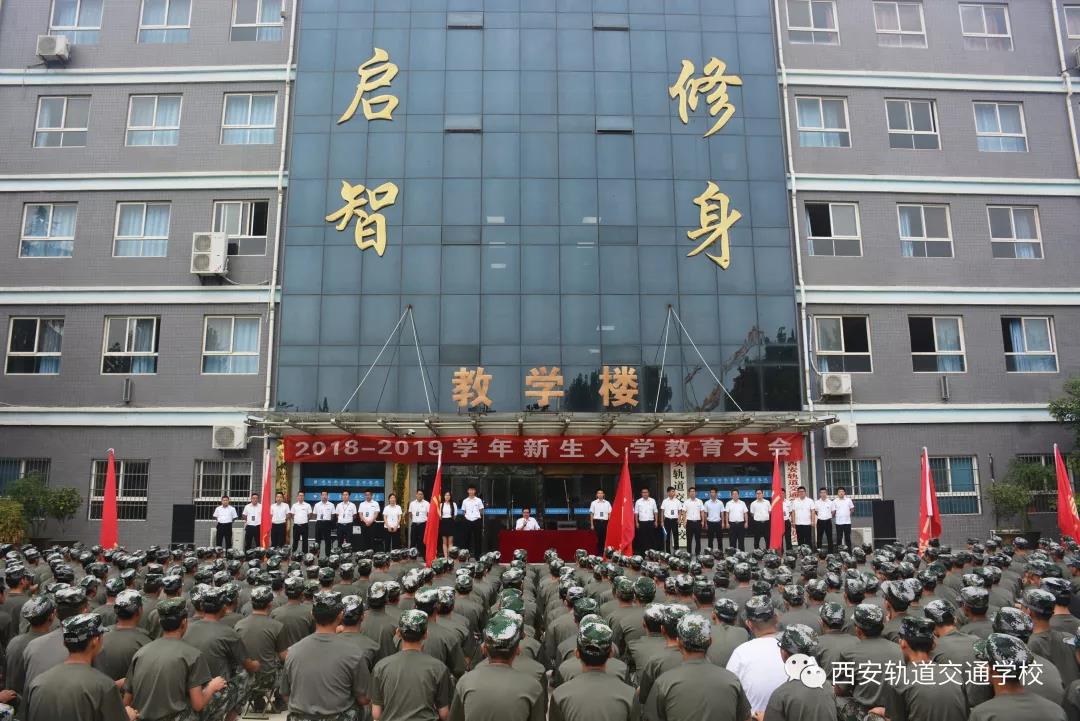 莘莘学子,风华正茂,激昂青春,朝气蓬勃。为了增强新生对我校基本情况的认识及更快的融入新的校园生活,明确自己的人生目标。2018年8月17日上午,在我校学生处、军事管理科的共同组织下,于教学楼前隆重举行了2018—2019学年新生入学教育大会,西安轨道交通学校党支部书记兼军训团政委杜启进、学生处长刘飞、军事管理科长陈东及全体辅导员、军训教官和2018级新生共同参加了本次大会。