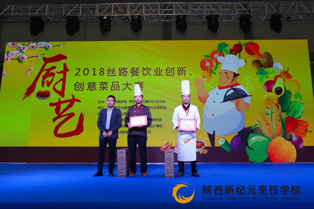 接下来,比赛正式开始。陕西新纪元烹饪学校教师王坤明、宋伟老师分别代表我校参加了本次2018丝路美食创新、创意菜品大赛,按照大赛的设置,王坤明老师为大家准备了热菜,宋伟老师为大家准备了凉菜,最终,陕西新纪元烹饪学校在此次大赛上荣获:“2018丝路创新、创意菜品大赛团体金奖”,宋伟老师荣获“2018丝路创新、创意菜品大赛凉菜组金奖”!