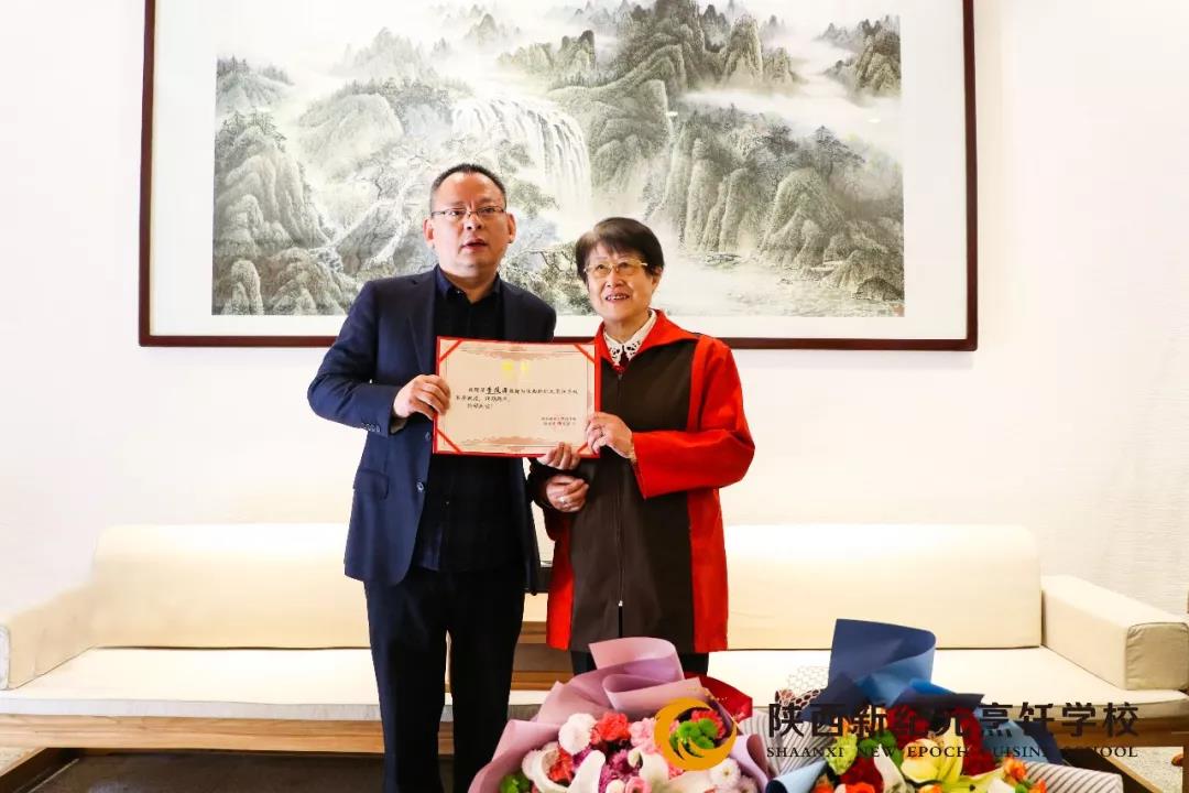 参观结束后,我校领导与李教授一行进行了座谈交流会,在座谈会上,经洽谈协商达成一致后,中国营养学专家兼原西安交大医学院教授李凤源女士应邀聘请为陕西新纪元烹饪学校客座教授,由陕西宇民教育集团董事长郑洪彪先生为李凤源教授颁发聘书并献花!
