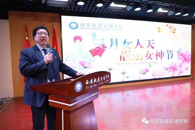 3月8日下午,西安轨道交通学校在研学楼多功能报告厅成功举办了欢庆“三八国际劳动妇女节”活动。校长蔡磊、党支部书记杜启进、校长助理姬金平、孙原、校办主任康艳及各处室领导共同出席活动。
