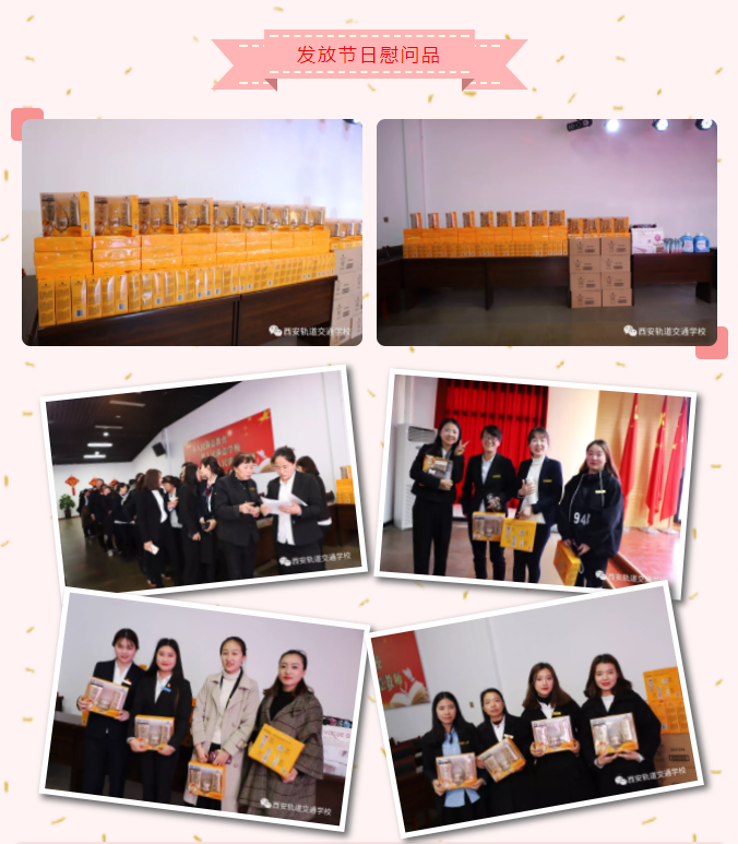 一场别开生面的活动不知不觉进入了尾声,陕西宇民教育集团及我校领导为所有女同胞们赠送了节日慰问品。使所有女同胞们,深深感到能在这样一个温馨的大家庭里生活、工作,感到无比的温暖和幸福
