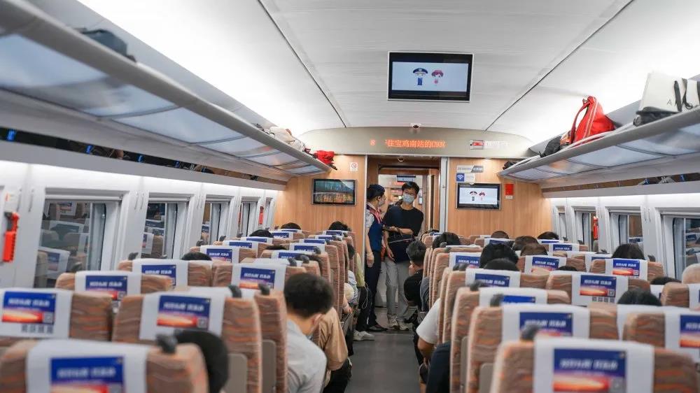 动车组列车上,全体人员观摩列车,听取客运管理工程师和列车长介绍工作流程和主要设施作用,与列车员对话,学习动车组各种设施的功能。