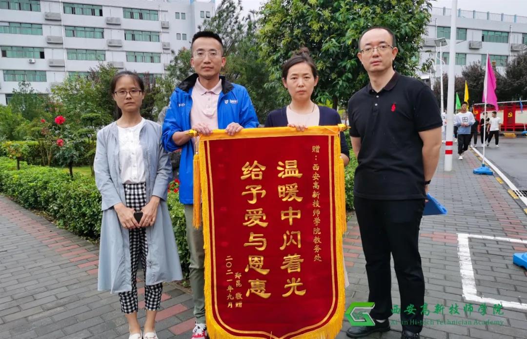 9月17日下午,西安高新技师学院收到了我院郑昆老师送上的一面锦旗和一封感谢信。“承蒙大恩有心,感谢一切给予”每一行文字都饱含着真挚情感,感谢信的字里行间也都透露着对西安高新技师学院全体教师的感激之情,朴素的语言表达出最真挚的情感。