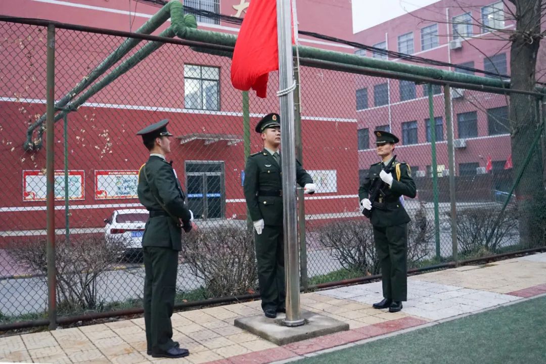 在高昂激越、铿锵有力的国歌旋律中,全体师生齐唱、注目肃立,仰望五星红旗在学校上空冉冉升起。