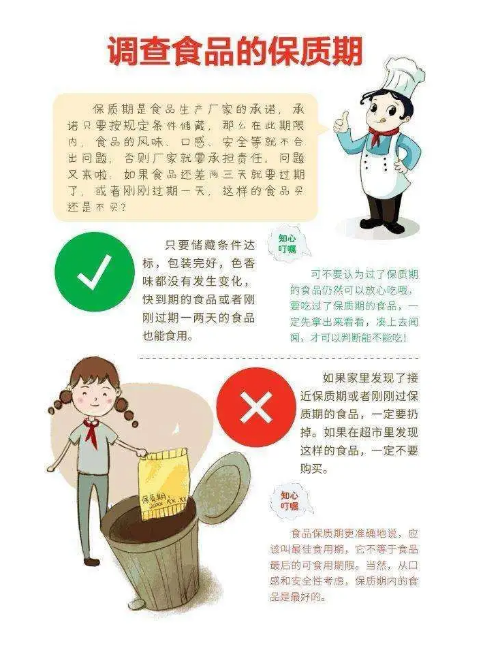 4、不买无证摊贩的食品,不买无商标或无生产日期、无生产单位、无保质期等标签不完整的食品;不到无证摊点、快餐店、小店购买食品或用餐。及时处理家中发霉变质、污秽不洁、超过保质期的食品。