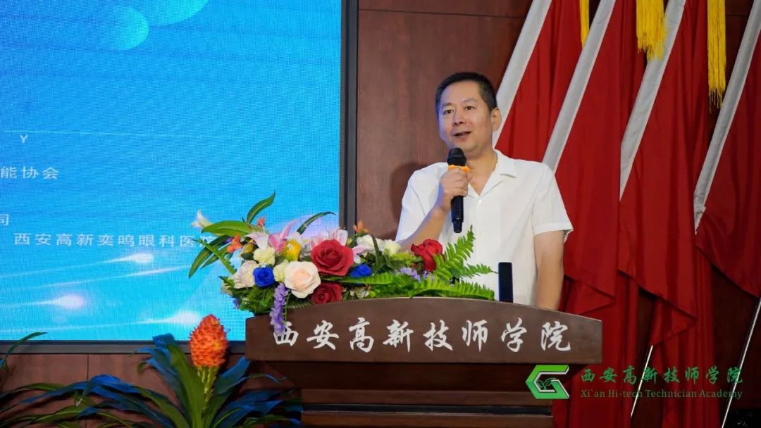 西安高新技师学院常务副院长任東首先代表承办方西安新思维职业能力培训学校、西安高新技师学院向各位领导、嘉宾表示衷心的感谢!向各位参赛选手表示热烈的欢迎!近年来随着行业发展,人们对眼镜验光员的需求扩大,伴随着科技进步行业对眼镜验光员的要求愈加严格,大家需要不断地学习和提高自己的专业技能。希望通过此次竞赛,各位参赛选手能够得到进一步提升,希望我院能够与各方加强交流与合作,共同推进西安市眼视光行业的创新发展和转型升级。