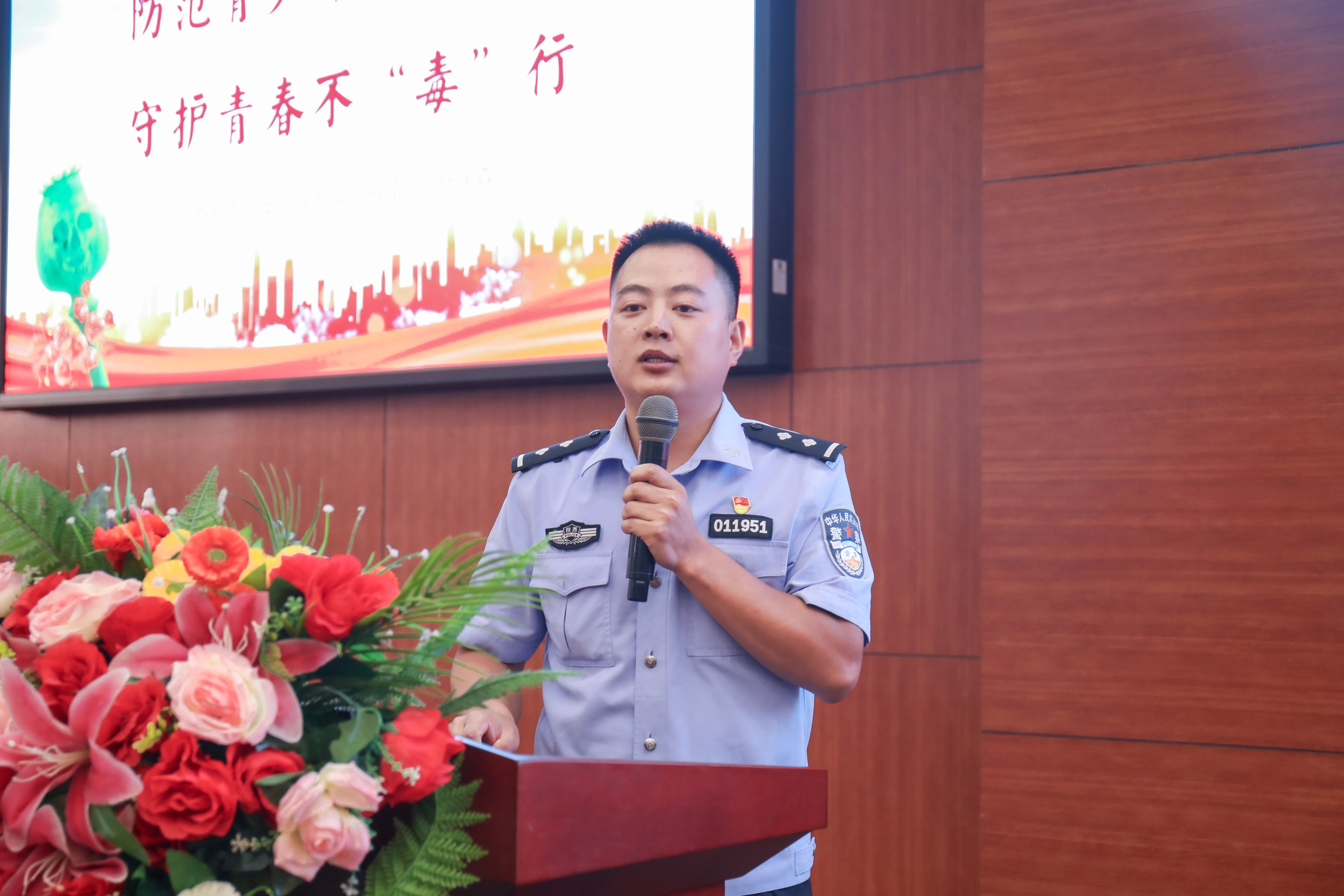 在“禁毒课堂”环节,戒毒所舒警官结合新型毒品模型讲解及互动提问的方式,向同学们系统讲解传统毒品、新型毒品、新麻精药品及毒品替代品的种类和危害,重点讲解了“曲马多”、“依托咪酯”等新麻精药品的药性与毒性,以及滥用新麻精药品及“笑气”、“丁烷”等毒品替代品的危害后果,并结合相关案例对吸食毒品、滥用麻精药品和毒品替代品的法律后果进行深入浅出的讲解,教育引导青少年学生自觉防范毒品“甜蜜陷阱”,擦亮预防毒品侵害的“火眼金睛”。